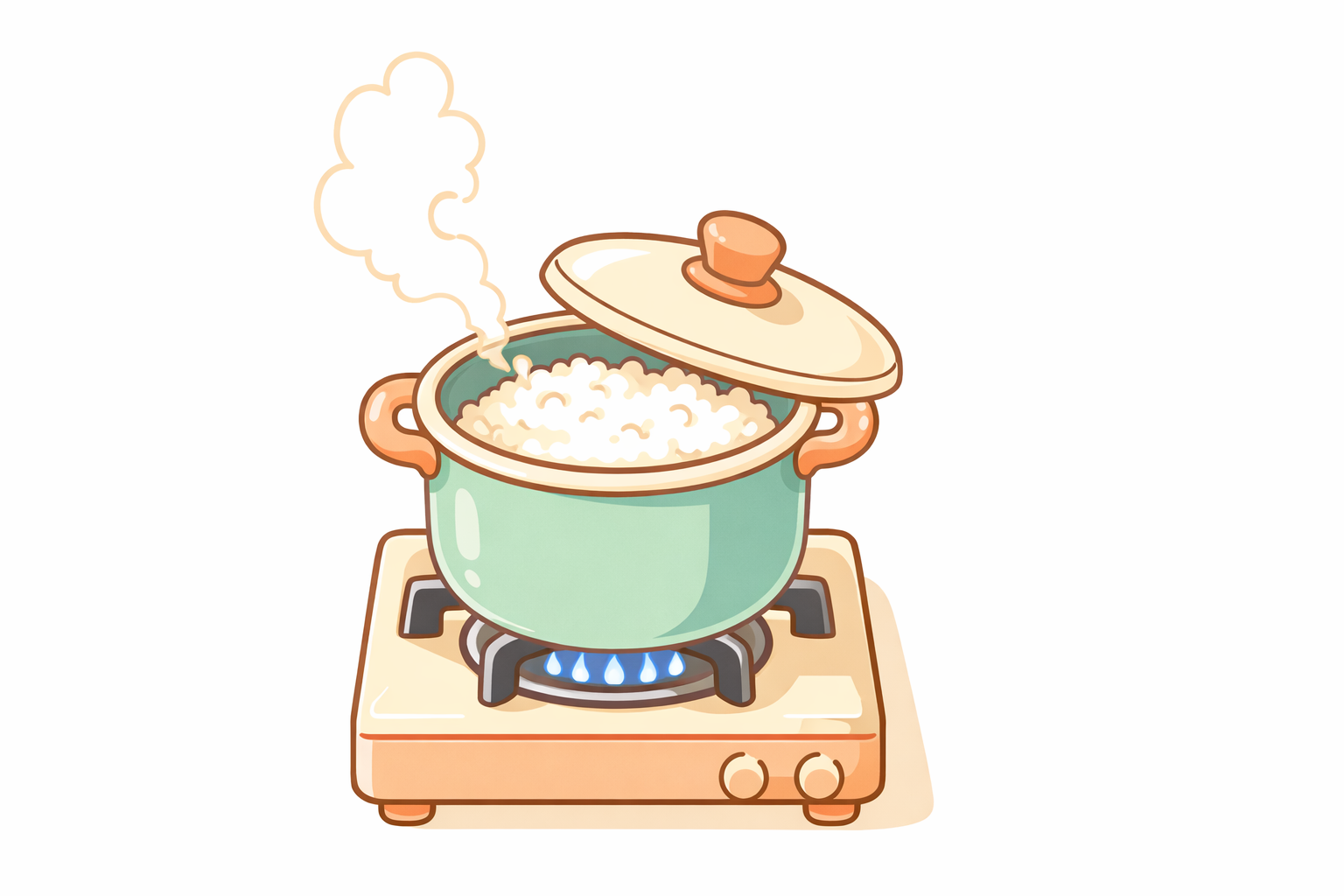 | 芯が残る | 水が少ない・弱火のつもりが中火に近くなっていた | 水を少し増やす。弱火は本当に小さな火で |